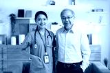 Happy caregiver and elderly patient smile looking camera nursing at home. Asian senior man and doctor giving care and empathy to patient or retirement in homecare premium service. Elderly care concept