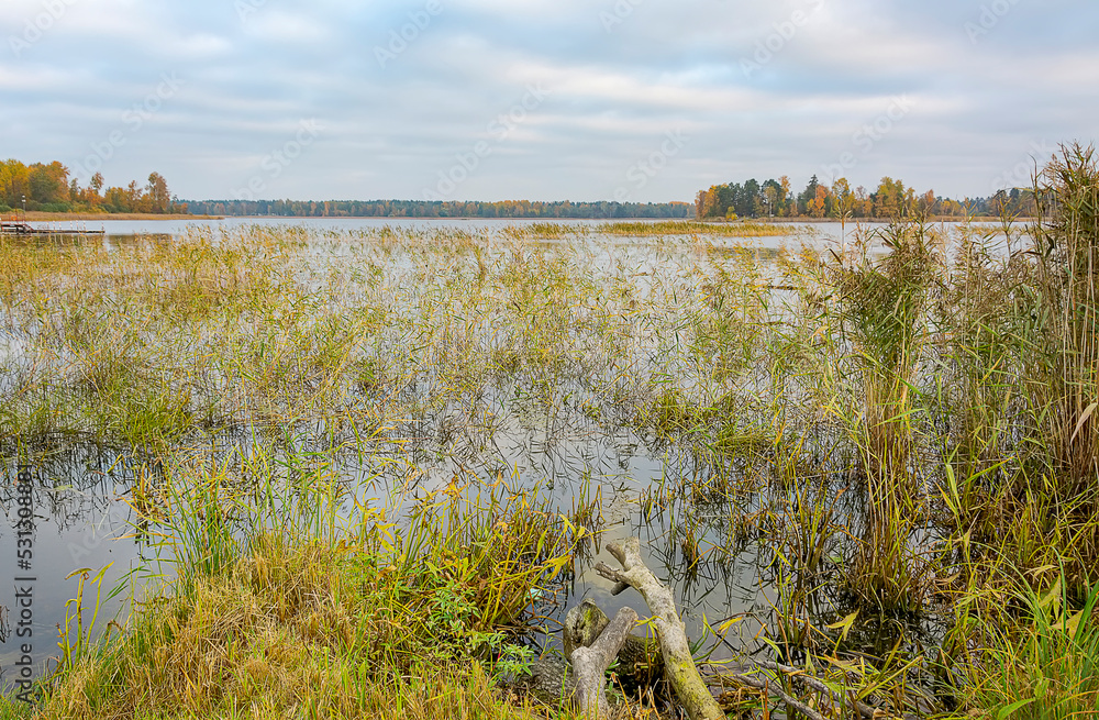 Autumn landscape on Lake Vuoksa in the Leningrad region.
