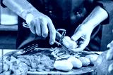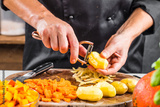 mid section of chef preparing fresh organic ingredients for pumpkin soup