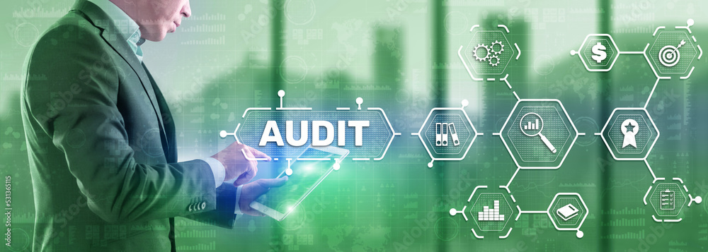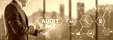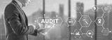 Audit. Checking the financial statements of the company. Businessman touching Audit on 3d icon on virtual screen