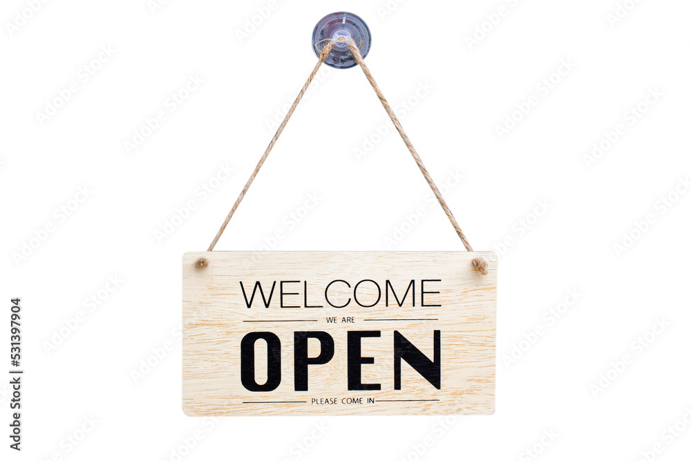 Text on vintage black sign "Come in we're open" isolated on white background,With clipping path