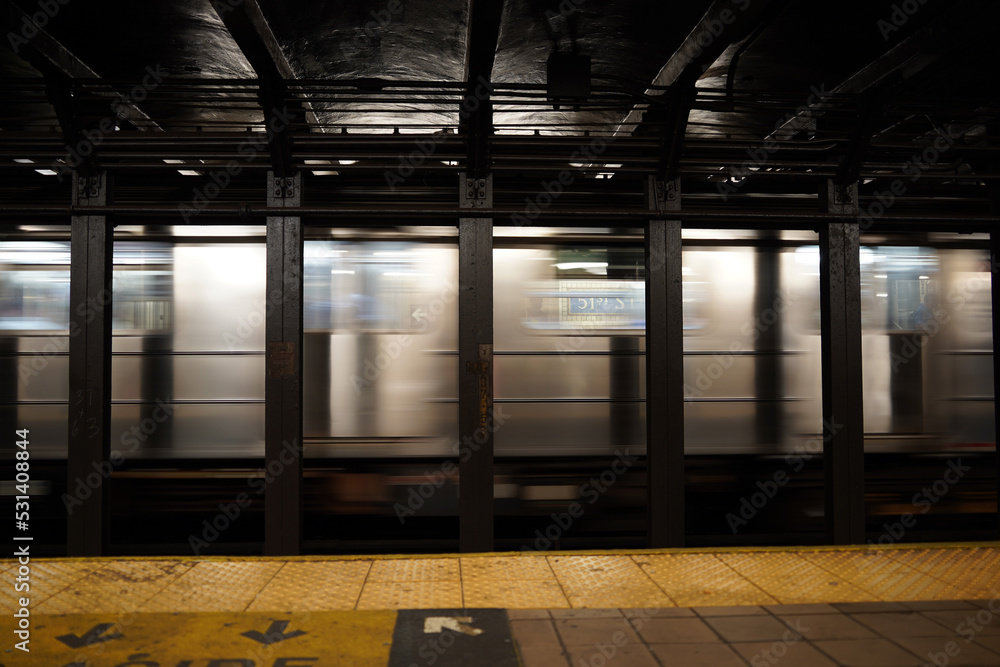new york city subway moving train at 51 st station