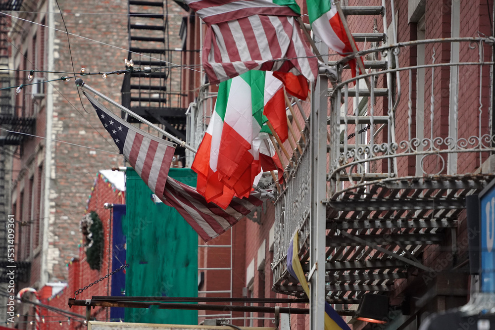 Little italy new york buildings italian flag green white and red