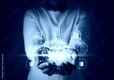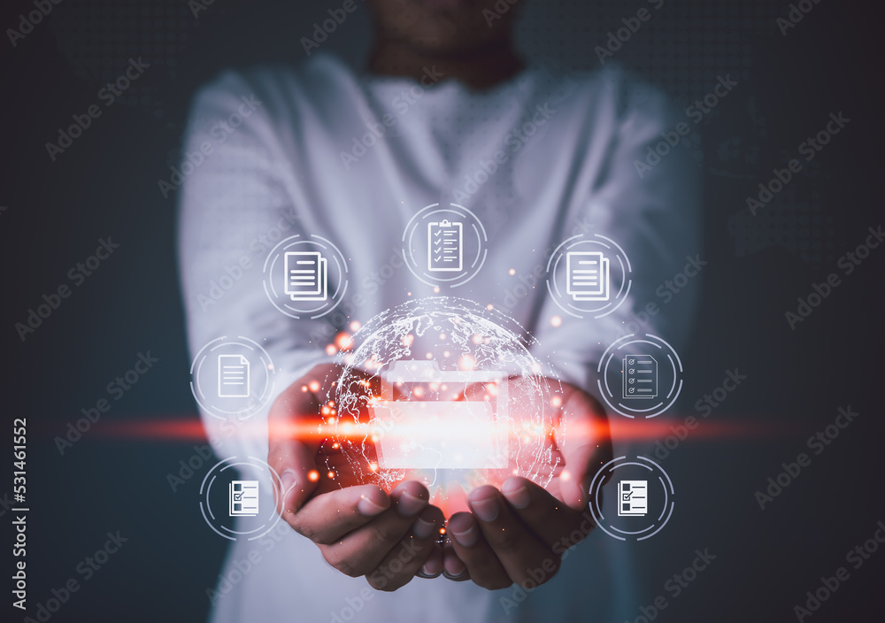 Virtual screen icons Global Online document file data software for efficient archiving and managing files, Online Document Management System (DMS). company's corporate business technology process