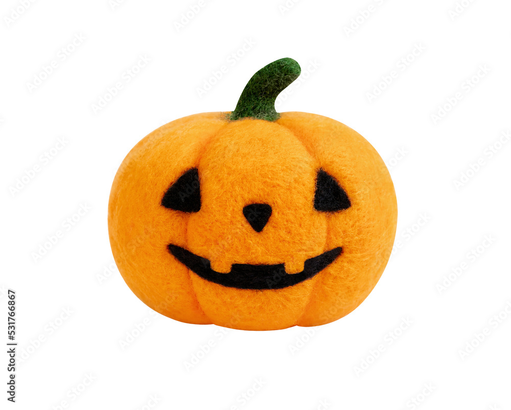 Halloween pumpkin isolated on a transparent background. Toy Halloween pumpkin made of wool. Felting.