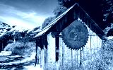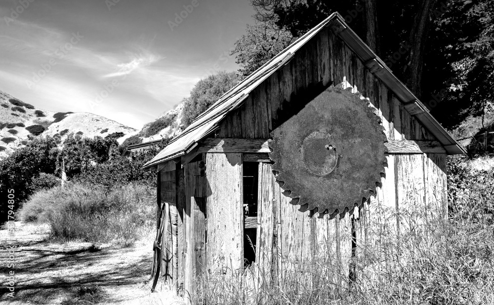 Black and white picture of abandoned sawmill at Scorpion Ranch on Santa Cruz Island in the Channel Islands National Park - black and white
