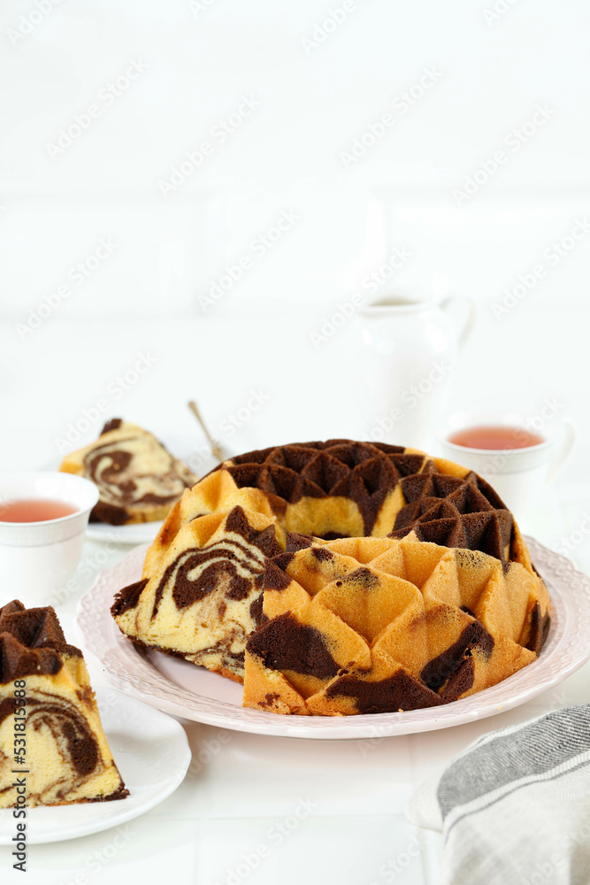 Bundt Marble Cake or Marmer Cake is Cake with Marble Effect made from Two Different Colours of Batters.