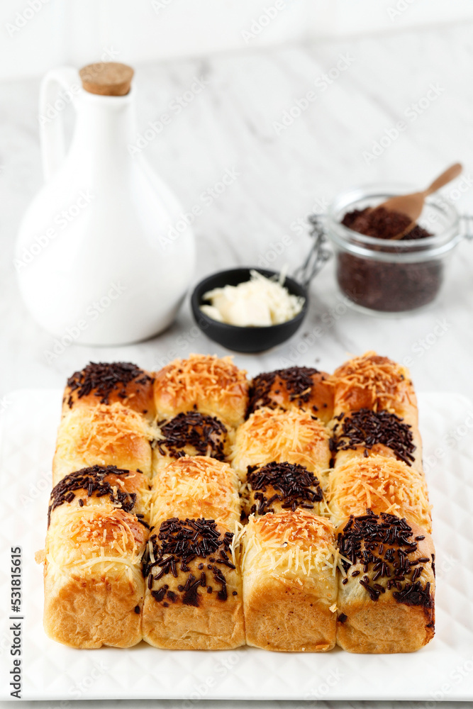 Pull Apart Japanese Hokkaido Bread with Chocolate Sprinkle and Grated Cheese.