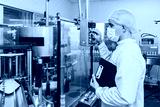 food and drink factory engineer staff worker operate machine at production line. beverage products industry.