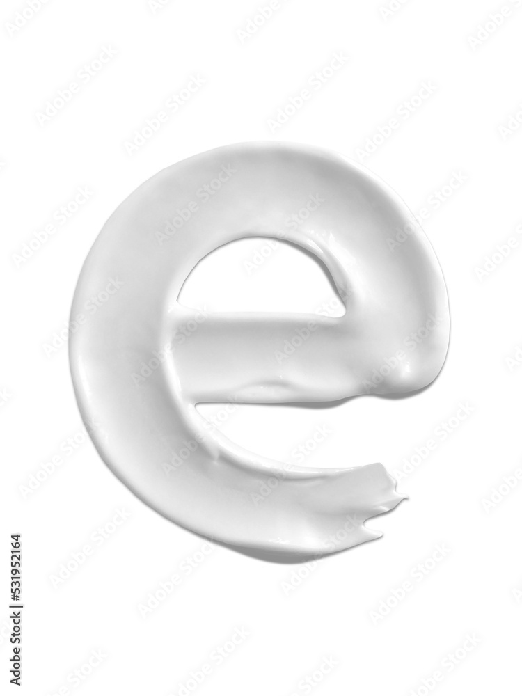 Alphabet Letter e, Cream moisturiser smudge texture smear letter written with white liquid beauty product