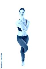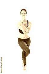 woman making a Yoga pose: Eagle Pose – Garurasana