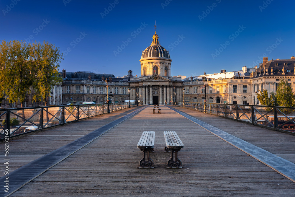 Pont des Arts bridge over the Seine river in Paris at sunrise. France