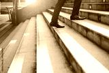 Businessman walking on upstairs taking landscape outdoor shots Unrecognized businessman going to office in the morning in rush hour selective focus Business White collar worker and leadership concept