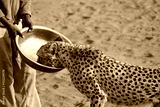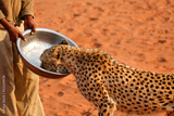 Feeding leopard meat in the Kalahari Desert. Namibia.