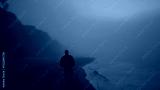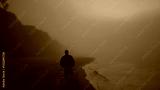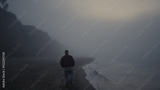 Stylish guy enjoying walk at sea coastline. Sad man looking ocean horizon