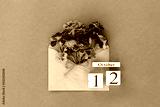 October 12. Bouquet of orange flower in craft envelope and calendar date on green background. Minimal concept Hello fall. Template for your design, greeting card