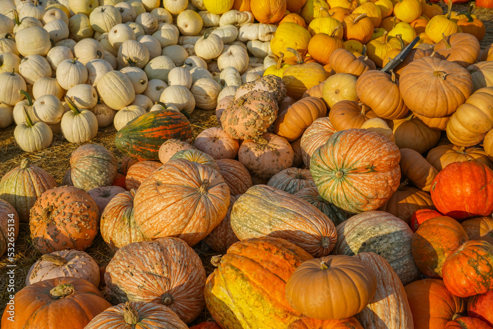 variety of pumpkin harvest in autumn season