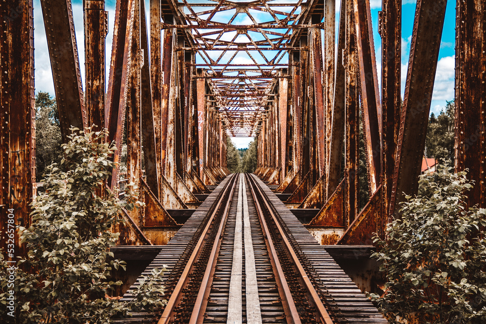 Old railway bridge over the river, Pori, Finland
