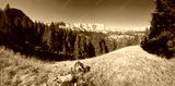 Panoramic view on the Devoluy Massif with Bure Peak (Pic de Bure) in Summer. Hautes-Alpes, French Alps, France