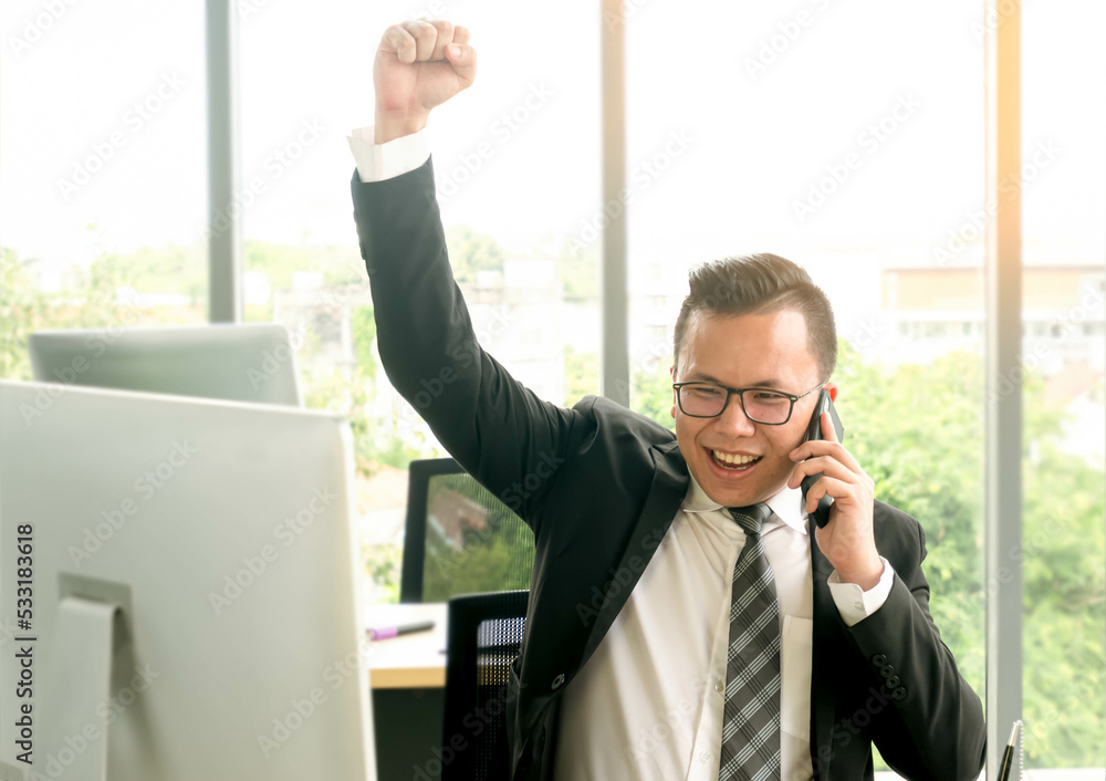 Success businessman talking on smartphone in the office