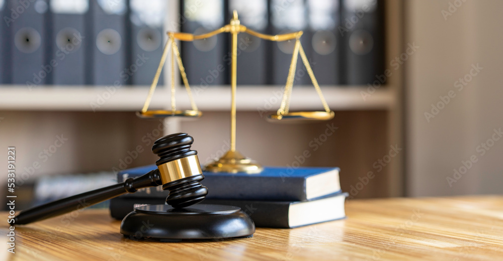 judgment hammer, Legal office. Attorney at law. Law and justice. Wooden judge gavel, close-up view. lawyer's desk