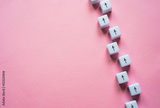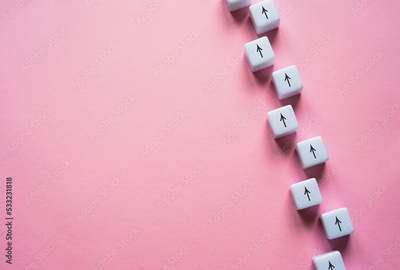 Chain of arrows blocks on a pink background. Concept of conformism, vertical of power. Consistency and focus. Unchanging course of development. Education and skill growth. Building a solid strategy.