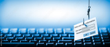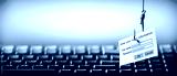 Login Information Attached To Large Hook Hanging In Front Of Computer - Cyber Crime / Phishing Concept