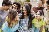 Diverse young people having fun outdoor - Cheerful students outside of university