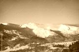 winter landscape with mountains on horizon. fir trees covered with snow. beautiful winter landscape. Carpatian mountains
