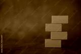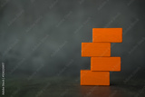 Empty of toy four orange blocks piled together with copyspace.