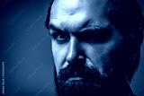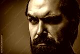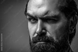 Handsome stylish bearded man. Sexy male, macho, long beard. Attractive caucasian bearded hipster. Black and white