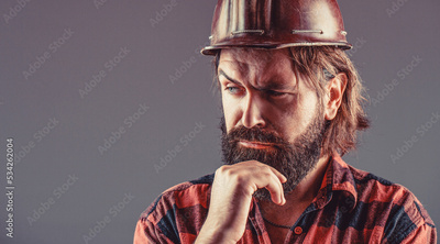 Builder in hard hat, foreman or repairman in the helmet. Building, industry, technology - builder concept
