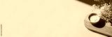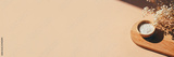 Wooden bowl filled with clay mask. Beauty treatment for spa and wellness on beige background. Skincare natural cosmetic concept for body care with dry plants and shadows