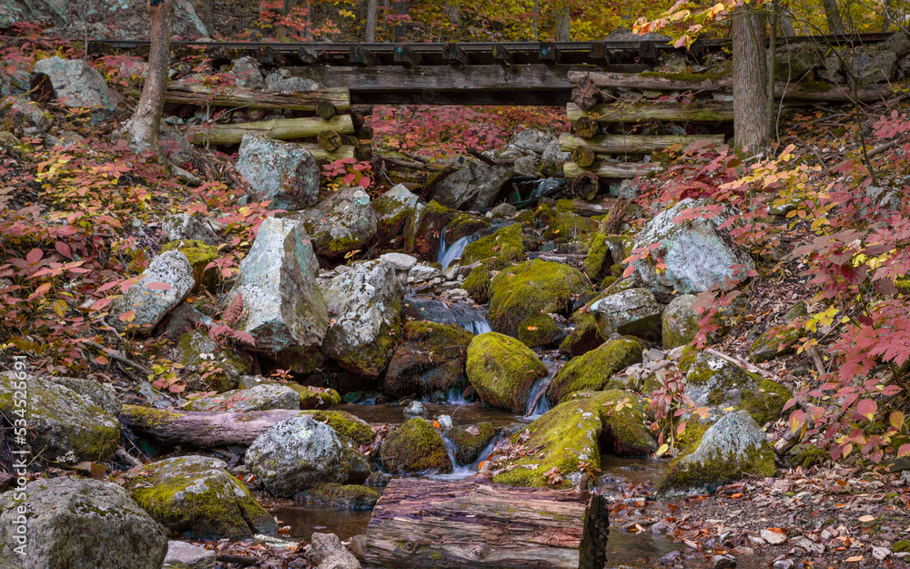 Abandoned old historic railroad tracks in the mountains