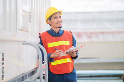Asian man worker standing at machine in factory, Engineer factory concept
