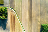 Kolorowe pola uprawne widziane z góry, rolniczy krajobraz polskiej wsi. Wczesna jesień. Jesienne mgły.