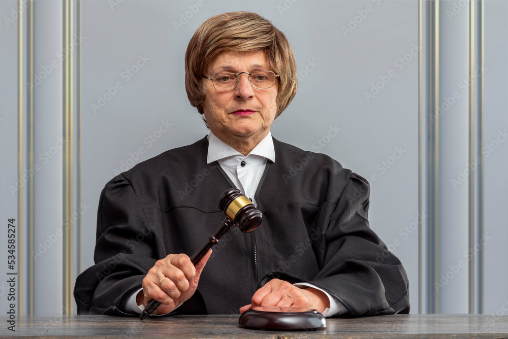 Judge banging judge's gavel. Law Lord wearing gown using a hammer for attention and verdict, justice judgment at courts of law
