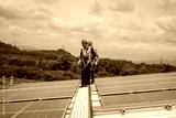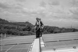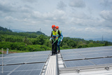 Engineers checking the operation of the system solar cell on roof at factory,Alternative energy to conserve the world's energy,Photovoltaic module idea for clean energy production.