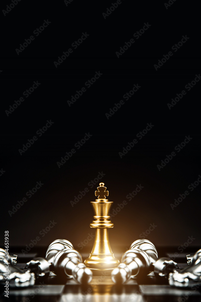King chess pieces stand on falling chess in vertical concepts of challenge of leader business team or teamwork volunteer or wining and leadership strategic plan and risk management or team player.