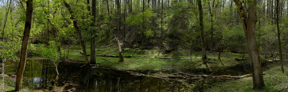 panoramic view of forest with stream