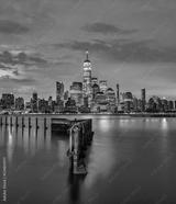city skyline at sunrise beautiful New York Manhattan sky colors river water reflections lights travel