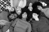 Happy young multi ethnic women having fun lying on park grass - Diversity and friendship concept