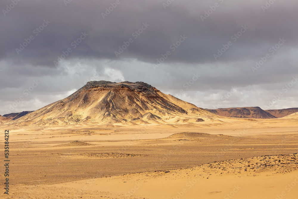 View of the Black and White Desert before a thunderstorm. Baharia. Egypt