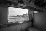 Riding a train in Indonesia sitting by the window watching the tracks and the view outside the window of the train speeding towards its destination