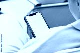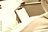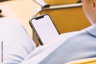Sitting girl looking at smartphone screen