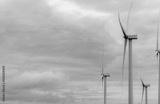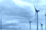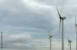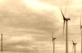 Wind energy. Wind power. Sustainable, renewable energy. Wind turbines generate electricity. Windmill against blue sky and sun light. Green technology. Renewable resource. Sustainable development.