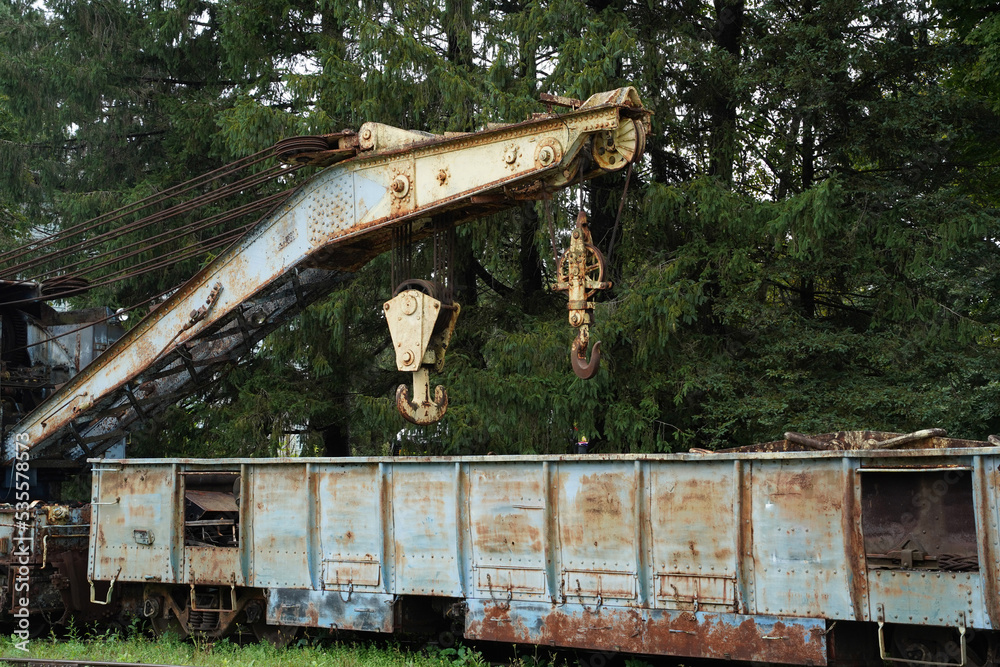 old rusted train crane abandoned