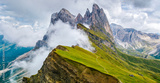 Wonderful landscape of the Dolomites Alps. Odle mountain range, Seceda peak in Dolomites, Italy. Artistic picture. Beauty world.