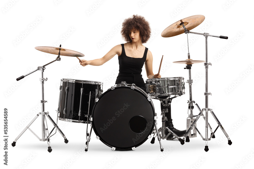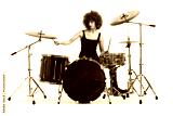 Female rock musician playing drums