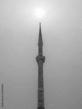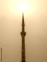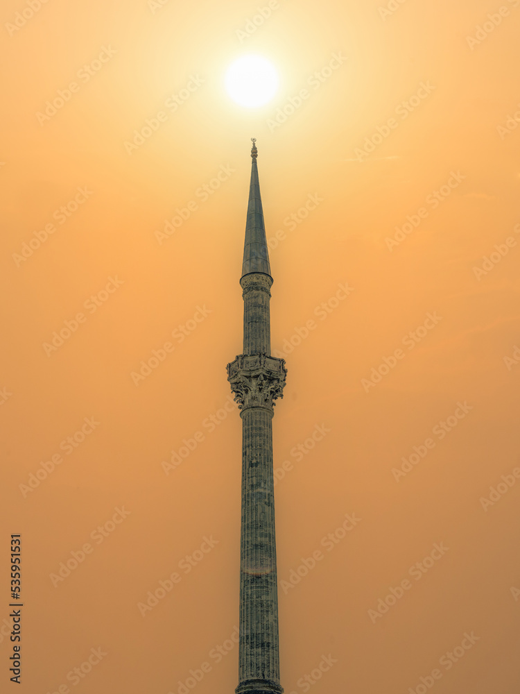 silhouette islamic mosque tower with background of sunrise sky